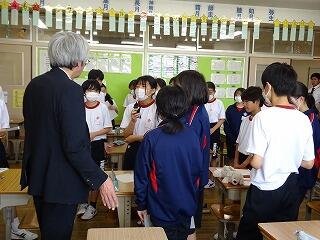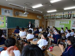 4月26日(金)5校時に教育実践研究家の菊池省三先生による1年道徳特別授業が行われました。『あたたかい笑顔,切り替えスピード,やる気の姿勢,ひとりひとり違っていい,人への思いやり,場の目的に合った態度,負の空気に負けない,仕事に対する誇り,大人(おとな→たいじん)になろう!』など。子供たちの瞳が輝く感動的な授業でした。