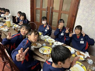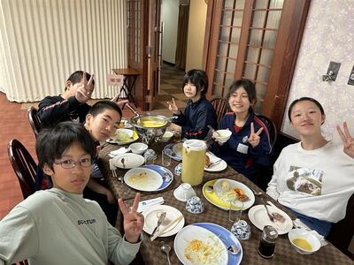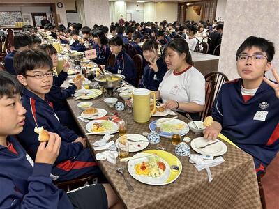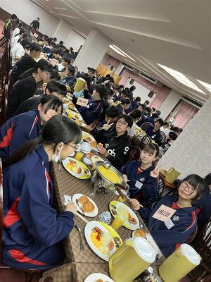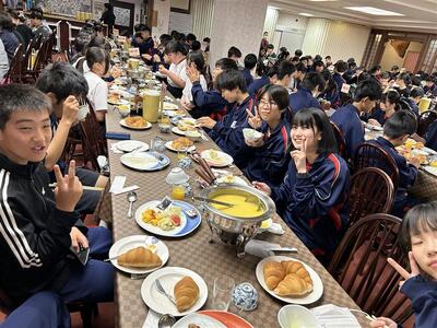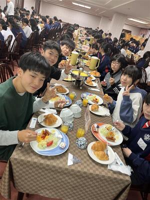 朝食をとり、先ほど農業大学校へ出発しました。