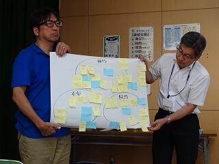 夏季休業中の8月1日(木)に柏中視聴覚室にて柏一小,旭東小,柏中の三校合同で「学校運営協議会」を行いました。最初に柏市教育委員会教育政策課柳澤佑介様より「柏中学校区義務教育学校開校に向けての進捗状況」についての講話がありました。その後,「期待することや疑問に思うことについて」のグループトーク,発表,振り返り等を行いました。