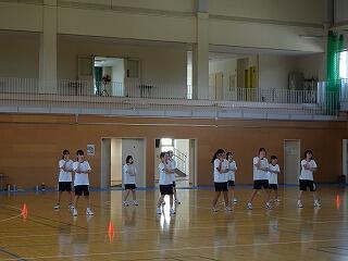 3年生は体育館で保健体育の授業で行っている「創作ダンス」の発表を行いました。表したいテーマを変化や連続のあるひと流れの動きで表現したり,ダイナミックに空間が変化するように動いたりしました。