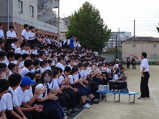 10月17日(木)東葛飾地方中学校駅伝競走大会壮行会とタイムトライアル全校応援を行いました。壮行会では選手代表や各区間の選手から大会への意気込み,生徒会長から激励のことば,全校応援がありました。目標に向かって,持てる力を最大限に発揮しましょう!頑張れ柏中!