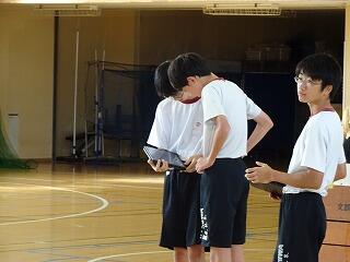 10月22日(火)2年保健体育 単元「B 器械運動」 教材名「跳び箱運動」を行いました。「美しい台上前転をするためのポイントは何か」について,Chrombookを使い,模範演技の動画視聴や実技を録画し,グループごとに再生映像を見ながら話し合い,課題解決を行いました。