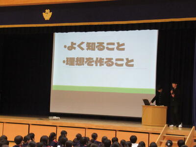 学校生活で心がけてほしい3つことについてお話をいただきました。