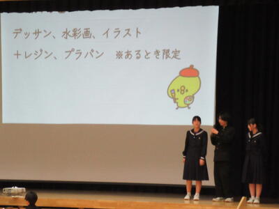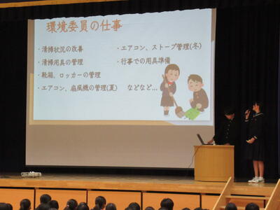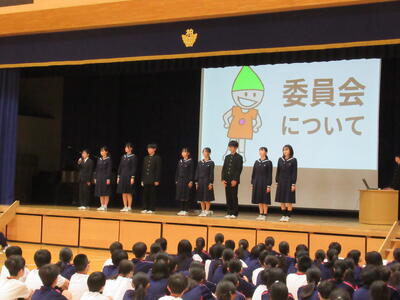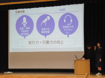 午後は、新入生歓迎会が行われ、柏中の生徒組織・各委員会・部活動の紹介がありました。