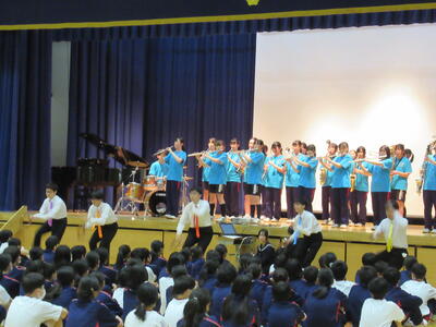 また、在校生からは歓迎の歌として「ほらね、」を、1年生へ送りました。声量やハーモニーが大変すばらしく、さすが在校生の歌声でした。