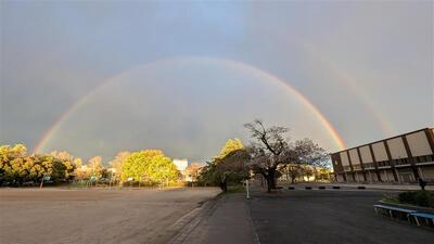 雨がやみ、晴れ間が広がると虹が姿を現しました。なんと二重の虹(ダブルレインボー)!!