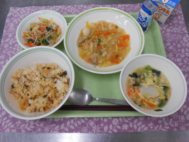 一覧へ キムチチャーハン・八宝菜・もやしとハムの中華サラダ・トック入り中華卵スープ・発酵乳・牛乳 日時 2025年03月17日(月) 公開対象 給食室 詳細 作成者 柏中学校管理者 更新日時 2025-03-17 13:37:18