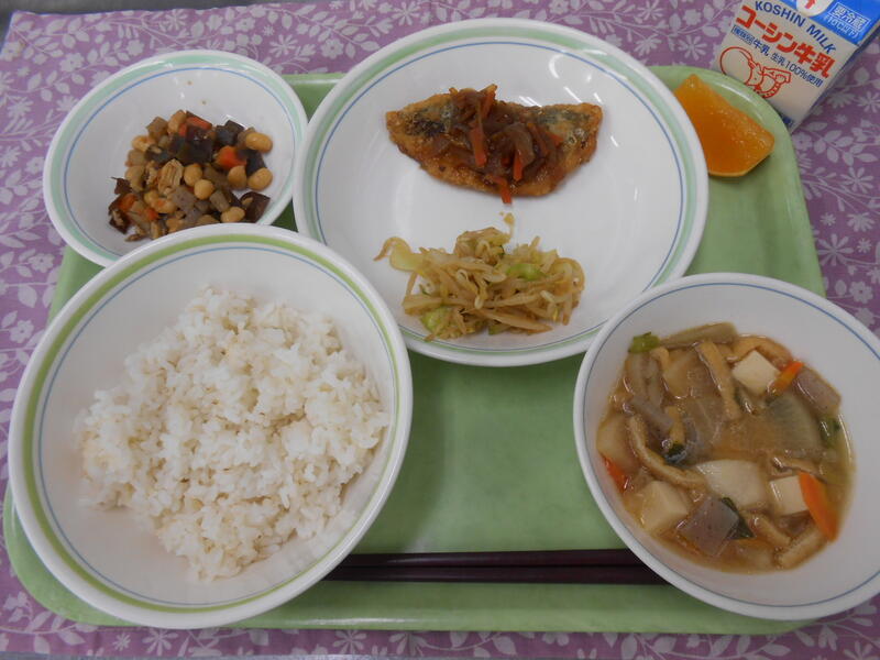 一覧へ ごはん・鯵の南蛮漬け・辛子和え・五目豆・味噌けんちん汁・夢オレンジ(柑橘果物)・牛乳 日時 2025年12月05日(金) 公開対象 給食室 詳細 作成者 柏中学校管理者 更新日時 2025-12-05 12:40:52