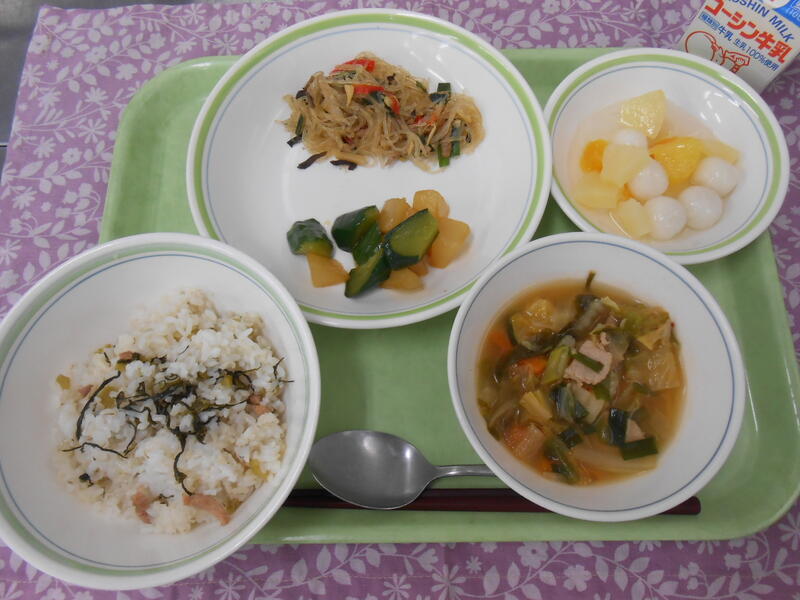 一覧へ 野沢菜チャーハン・きゅうりと大根のピリ辛和え・チャプチェ・味噌キムチスープ・フルーツ白玉・牛乳 日時 2025年06月04日(水) 公開対象 給食室 詳細 作成者 柏中学校管理者 更新日時 2025-06-04 12:13:13