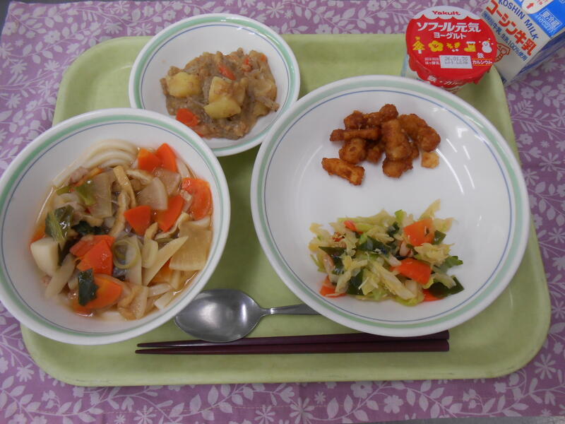 一覧へ けんちんうどん・イカのかりん揚げ・ささみとわかめの和え物・じゃがいものそぼろ煮・ヨーグルト・牛乳 日時 2026年01月15日(木) 公開対象 給食室 詳細 作成者 柏中学校管理者 更新日時 2026-01-15 12:12:46