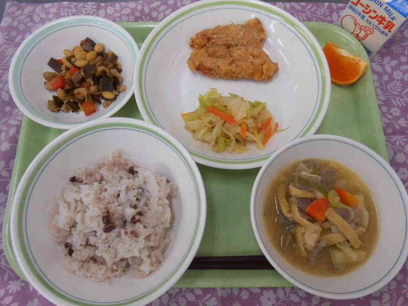 一覧へ 【3年生 卒業記念献立】赤飯・とりのから揚げ・柚香和え・五目豆・豚汁・せとか(柑橘果物)・牛乳 日時 2026年03月10日(火) 公開対象 給食室 詳細 作成者 柏中学校管理者 更新日時 2026-03-10 12:15:38