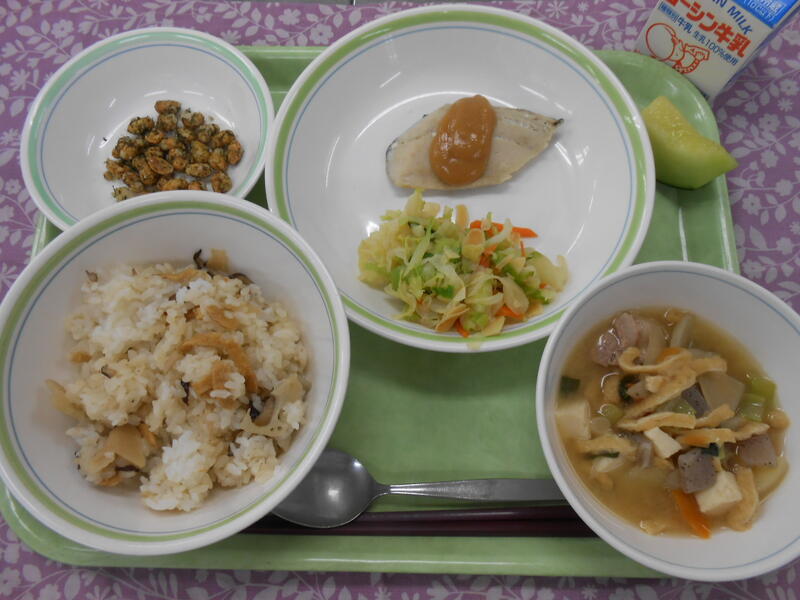 一覧へ 五目寿司・鰆の西京焼き・アーモンド和え・豚汁・メロン・かりかり大豆・牛乳 日時 2025年06月17日(火) 公開対象 給食室 詳細 作成者 柏中学校管理者 更新日時 2025-06-17 12:27:30