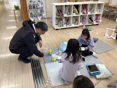 1月から生活科では、おもちゃ作りをしています。普段はゴミになりそうな牛乳パックや電池などを2学期のうちから集めていました。その身近な材料を使って「動くおもちゃ作り」に励んでいます。事前に設計図を書いてくる児童もいてやる気満々!!いざ、やってみると「失敗したー!」「上手くいかない!」などの声が聞こえましたが、失敗を繰り返しながら、「先生、見て見て!できたー!」と嬉しそうに自分の作った動くおもちゃを紹介してくれました。これから、自分が作りたいおもちゃを決めておもちゃを紹介する準備を進めていきます。