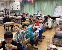 参観の保護者の方々にもお手伝いいただき「サンドイッチ作り」を行いました♡