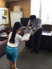 クラスで選ばれた学級委員が,校長室で任命書を受け取ります。