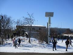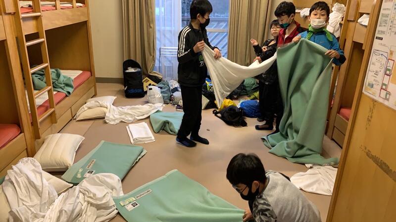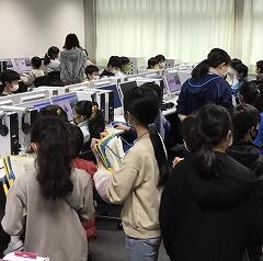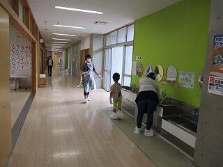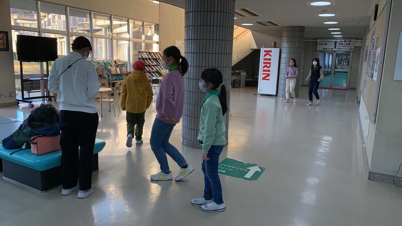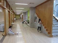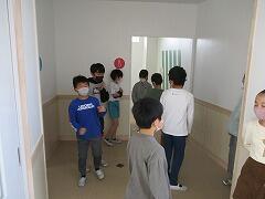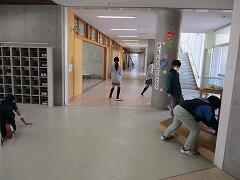 当初は,学童ルームの子ども達は,校内で接続確認をしていました。