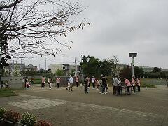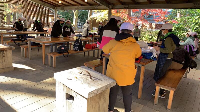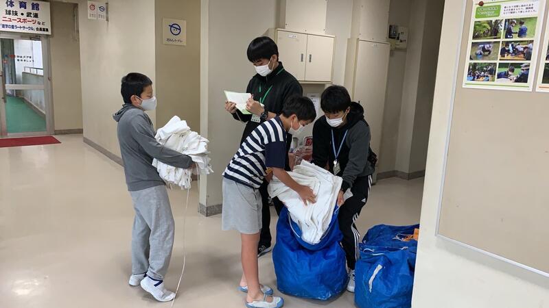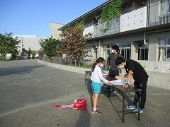 環境委員の方々は,早めに来て道具を準備したり役割分担を決めたりしています。