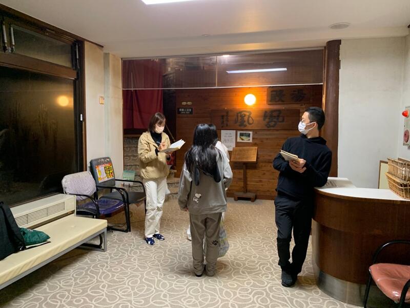 きれいになった式場で,職員も最終確認と打ち合わせを行います。