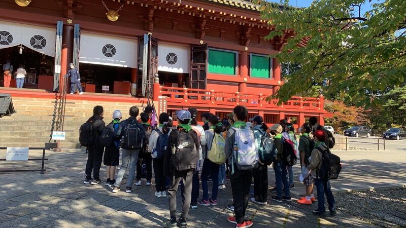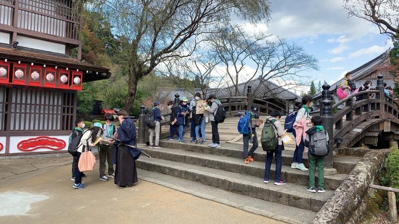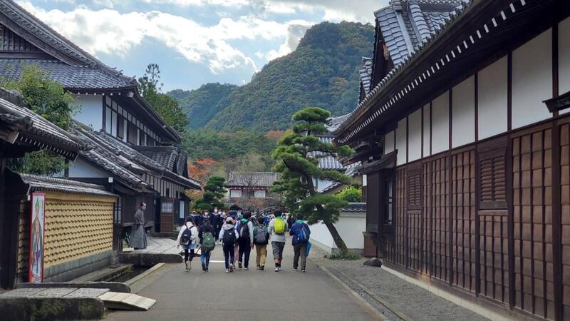 町並み散策では,グループに分かれ,ガイドさんの説明を熱心に聞いていました。