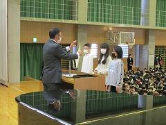 校長先生からは,「コロナ禍で大変だけど,クラスでまとまって,楽しく過ごすために頑張ってほしい。」と励ましの言葉がありました。