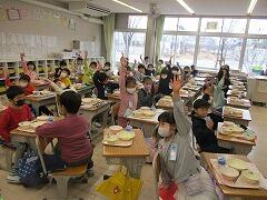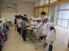 給食は準備,配膳など,当番を中心に,整然と行っています。