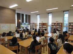 図書委員の生徒が作成してくれた動画を見た後、図書室内を自由に見学しました。