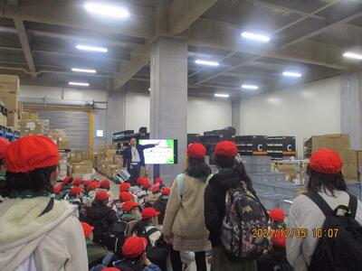 MFLP船橋では、AIロボットが荷物を運んでいる様子や工場でどのように荷物が梱包されているのかを見させていただきました今、社会科で運輸や貿易についての学習を行っており、実際の働く現場を見ることができ、子ども達も目を輝かせて見学していました