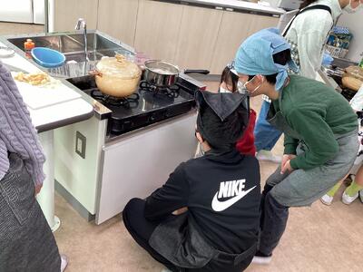 12月16日から19日に各クラスで調理実習を行い、ご飯とみそ汁を作りました