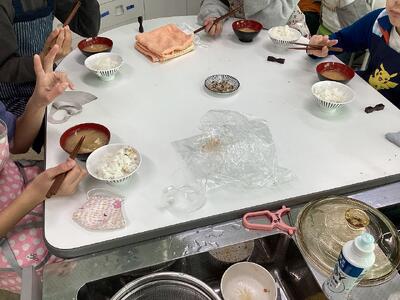 「鍋でご飯を炊くのが初めて」という子どもがたくさんおり、水の分量や火加減に気をつけながら慎重に取り組んでいました炊飯器にはない”おこげ”が出てるグループもあり、とてもおいしそうに食べていました