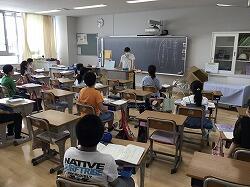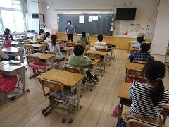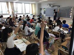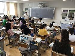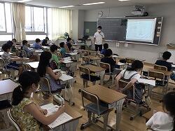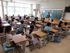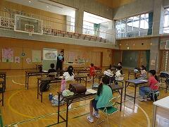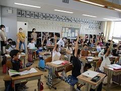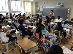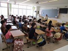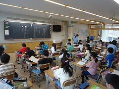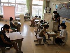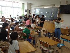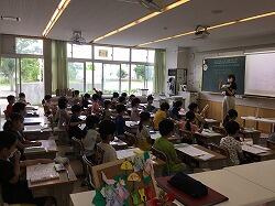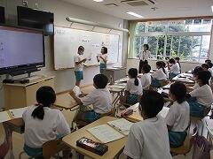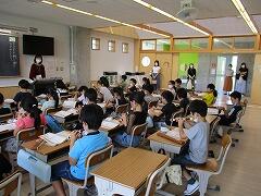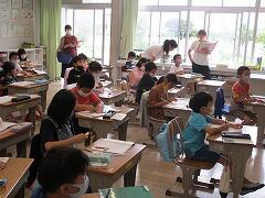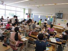 大学の教官や校長先生をはじめ多くの職員が見守る中,子ども達に笑顔で声をかけながら,学習内容をまとめていきました。