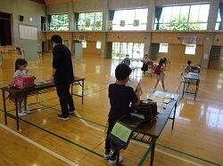 教材配付は,時間を分けたり列の間隔を十分にとったりして,感染拡大防止に十分留意して実施します。