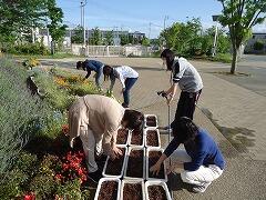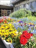 職員室前で綺麗に咲いている花々には,輪番で出勤した職員が水やりをしています。