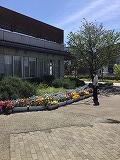 職員室前で綺麗に咲いている花々には,輪番で出勤した職員が水やりをしています。