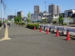 カラーコーンが置かれていて,近寄らないようになっていますが,通行する際にはくれぐれも気をつけて下さい。