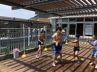 梅雨明けの青空のもと,テラスを綺麗にして,水鉄砲大会を行いました。