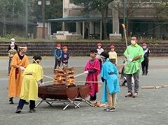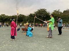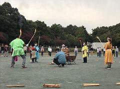 まだ明るさが残る中ですが,全員が見守る中,火の神から火の精に火が分け与えられます。