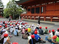 子どもたちは,本物の競技場や布施弁天に目を輝かせて,