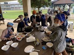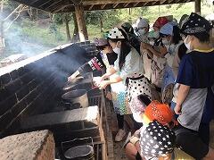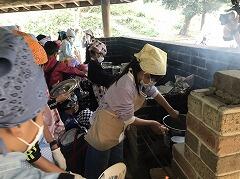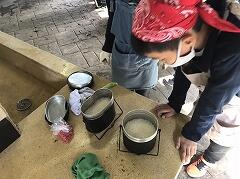家で練習をしてきたものの,かまどや飯盒,鍋など勝手が違い,戸惑っています。