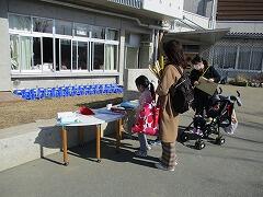 当日は,実際に1年生が使用している机やいすを用意し,学用品や給食時に必要なものを展示しました。