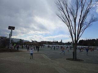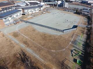 中学校の校庭で過ごす子どもたちもいます。