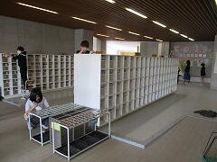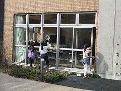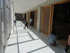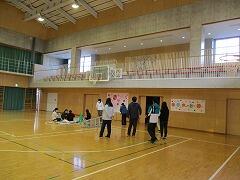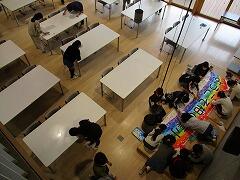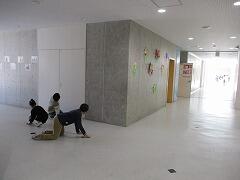 体育館前の長い廊下は,4年生も手伝いに来ています。