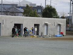 体育倉庫の砂を掃き出し,使いやすいように整頓します。