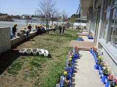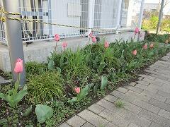 環境サポーターの方々が植えたチューリップがきれいに咲いています。