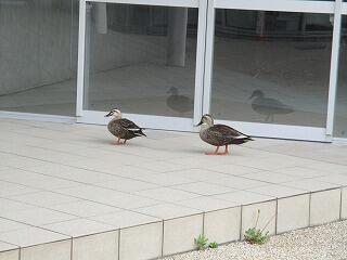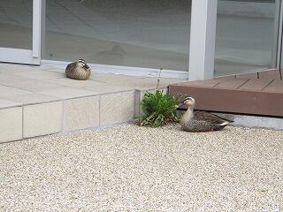 夫婦か親子かわかりませんが,まるで,ここが住処のように,スクールプラザ(中庭)でくつろいでいます。