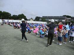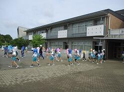 3年生,5年生は中学校の校庭から小学校へ向かいます。