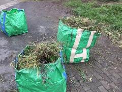 草でいっぱいになった重い袋は,友だちと協力して運び,次の草取りの活動がしやすくなりました。