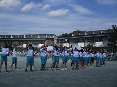 「全力で 本気のきずな 見せつけろ」のスローガンのもと,各学年,団体競技・表現運動・徒競走やリレーの3種目を行い,どの競技も,クラスや学年の仲間たちと団結して,一生懸命に取り組むことができました。