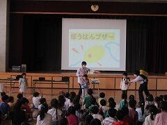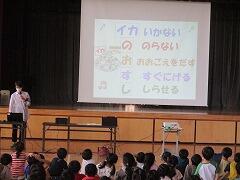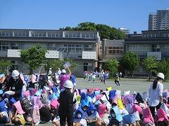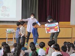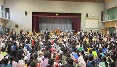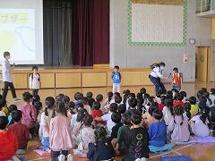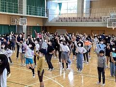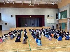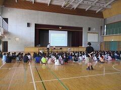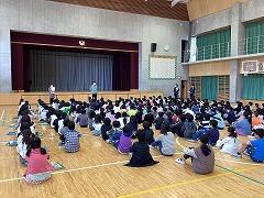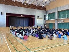 コロナの感染状況も改善してきたので,全校児童が体育館で一堂に会して行いました。