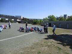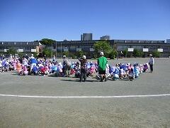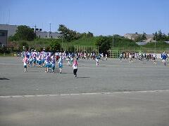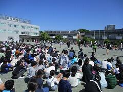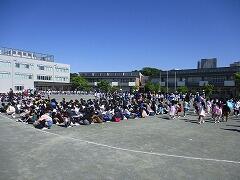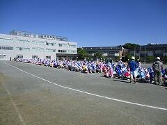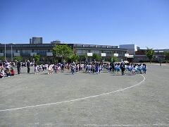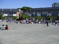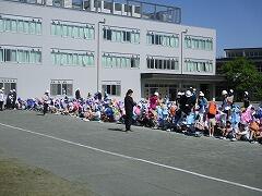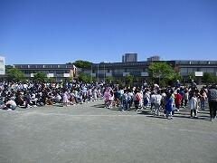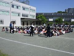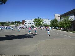 まず,3年生,4年生,1年生が校舎側に移動します。