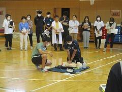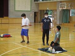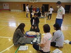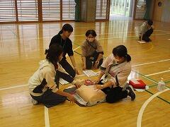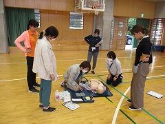 「応急手当普及員」の資格を持っている先生が講師になって,全職員が受講しました。